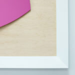This lightness of form is also explored in the new corner works, a piece in development for four years. It is a physical object that contours to the angled meeting point of a room creating it’s own ambiguous curved space. The corner piece inhabits an area of a room usually devoid of interference yet it’s through intervention that something new exists – a colourful but quiet entity cornered for consideration.
