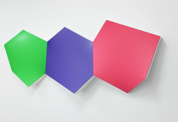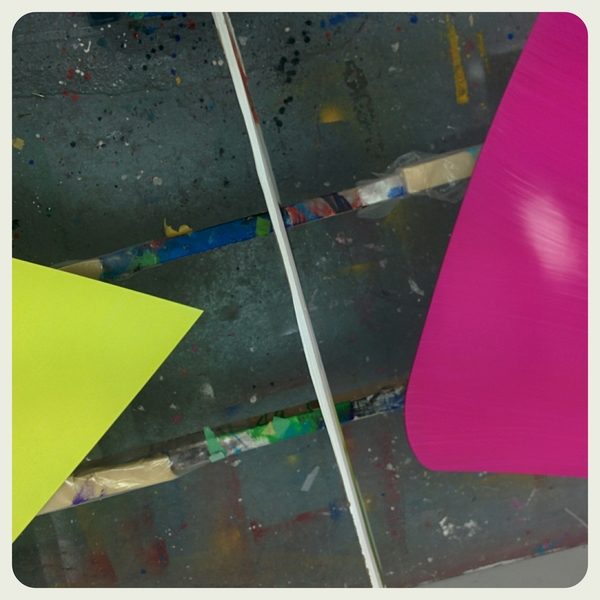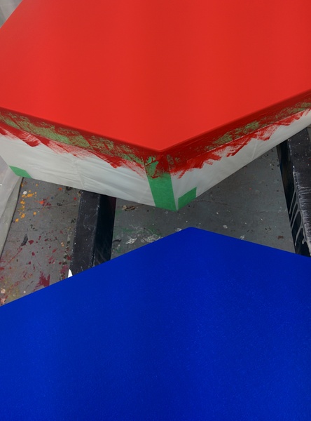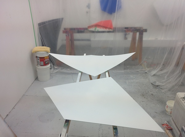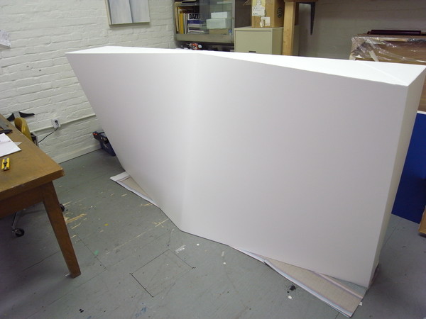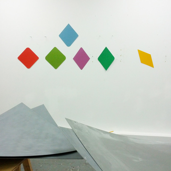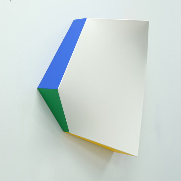 This lightness of form is also explored in the new corner works, a piece in development for the past 4 years. It is a physical object that contours to the angled meeting point of a room creating it’s own ambiguous curved space. The corner piece inhabits an area of a room usually devoid of interference yet it’s through intervention that something new exists – a colourful but quiet entity cornered for consideration.