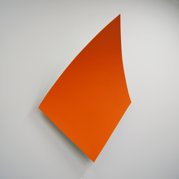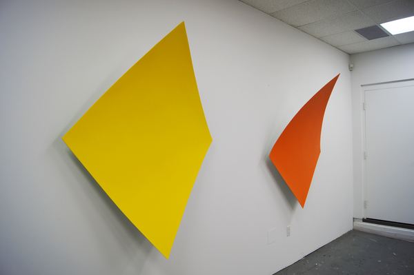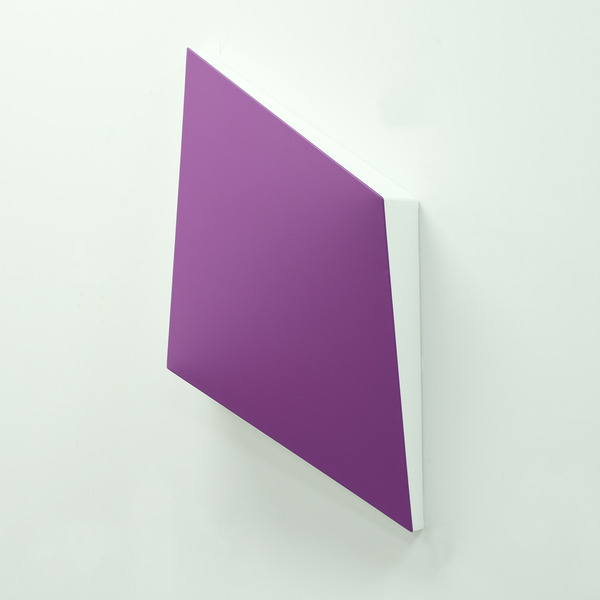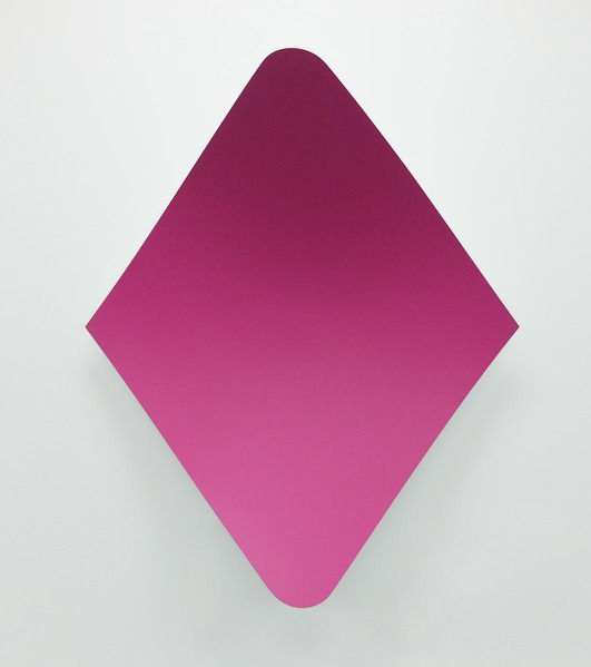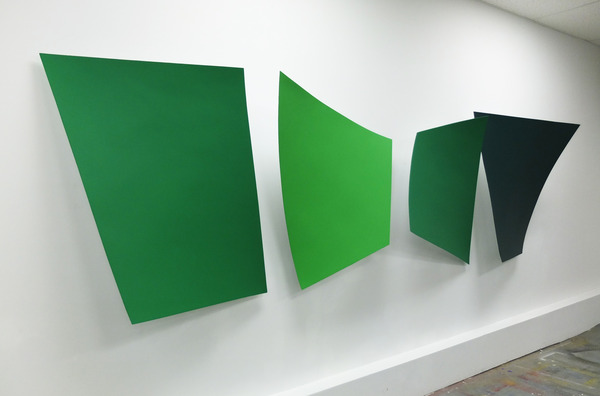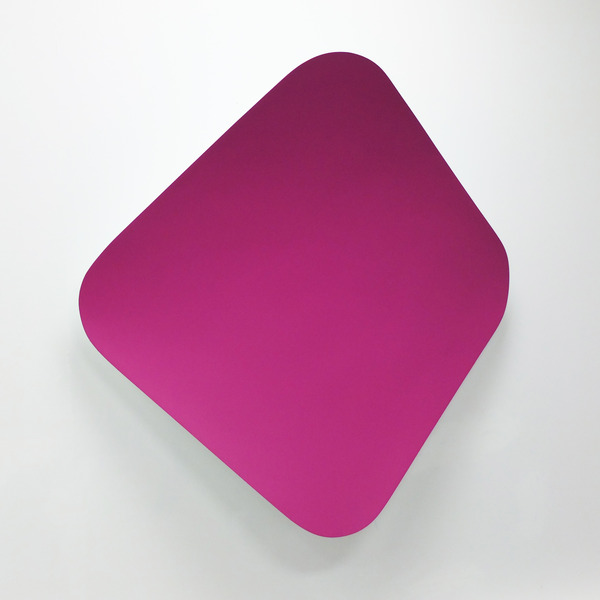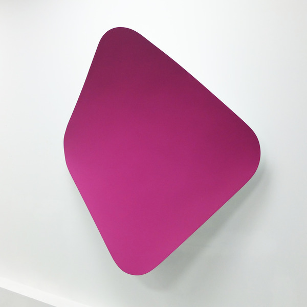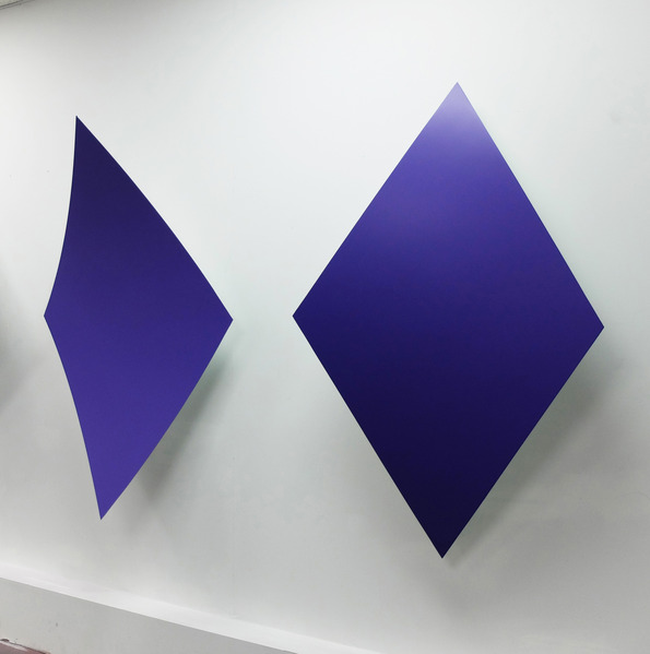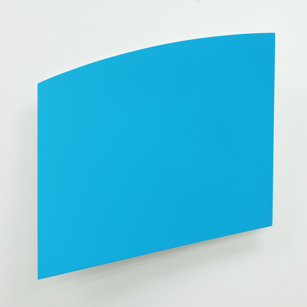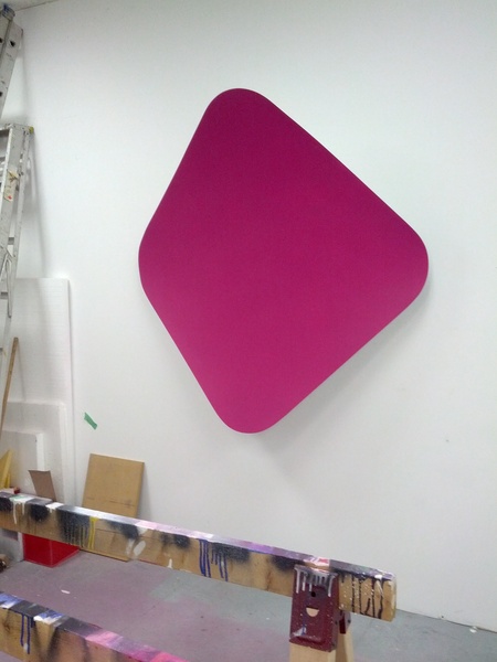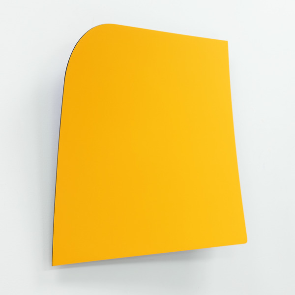 This continued evolution of work bought about a new variant of the series in 2009. The ‘Torqued Panels’ emerged out of the desire to remove the physical structure of the paintings (i.e. the stretcher frame), and to focus more intently on only surface. Fiberglass panels and custom mounting brackets were chosen to achieve painted torqued surfaces in varying sizes, shapes and colours that seem to ‘float off the wall’, giving them a weightlessness and presence apart from conventional paintings.