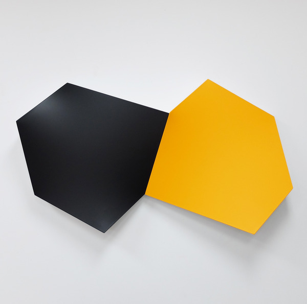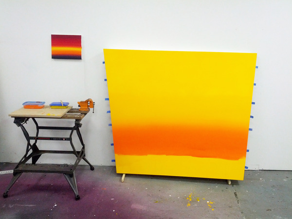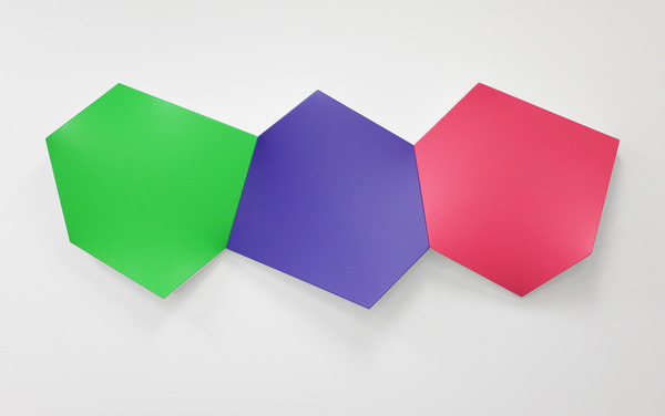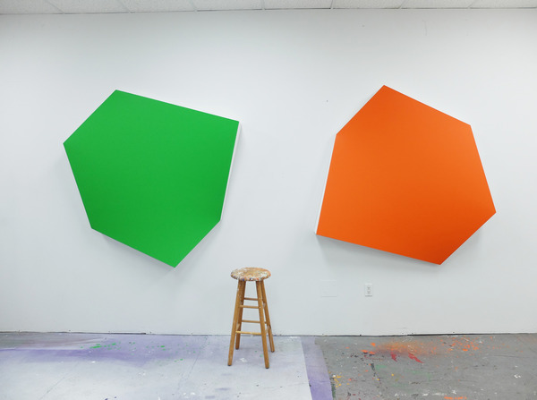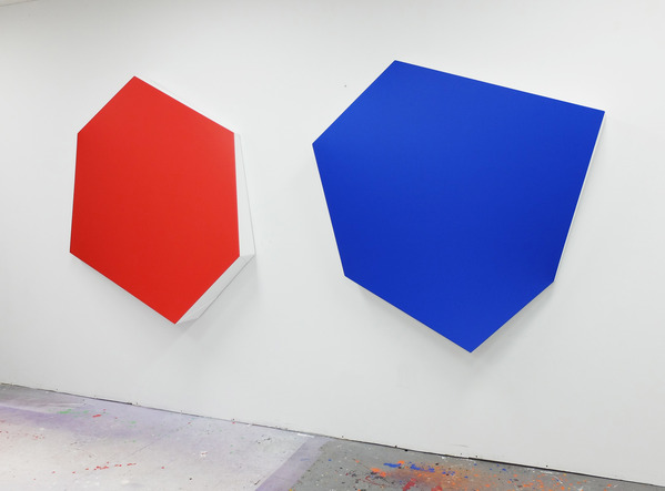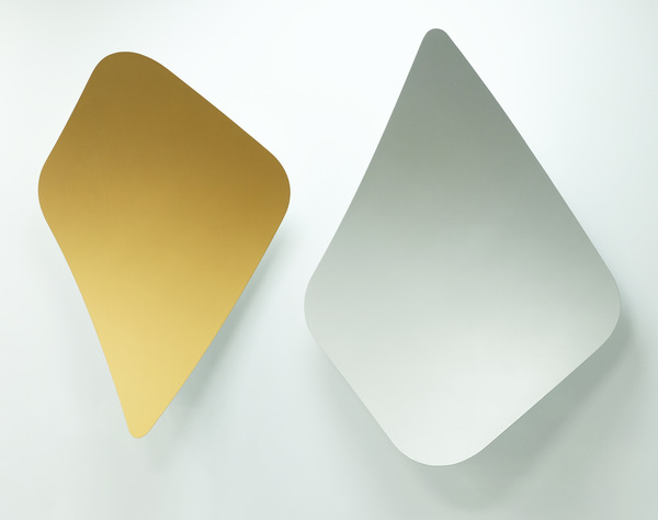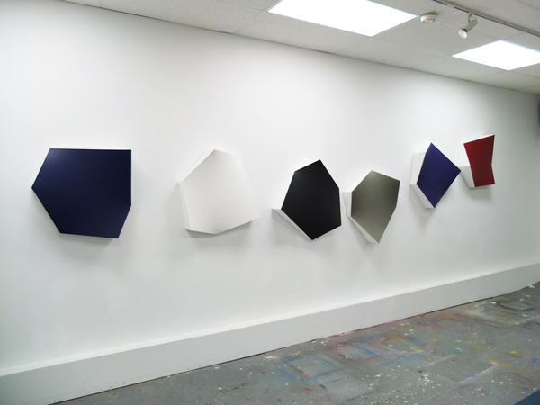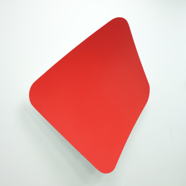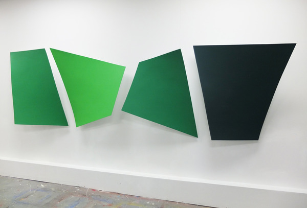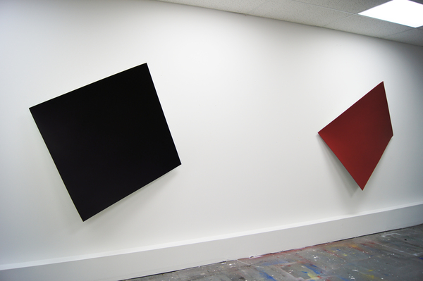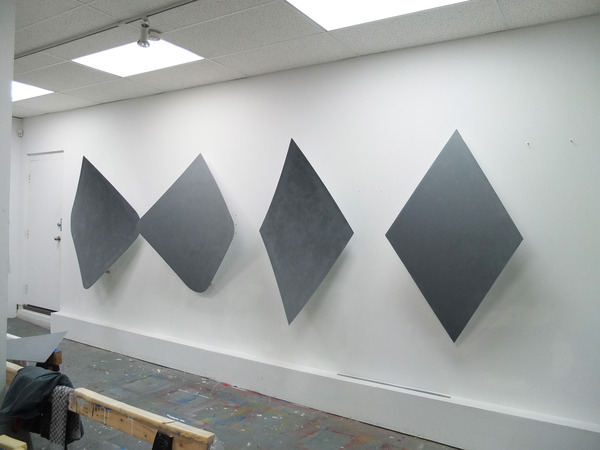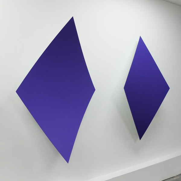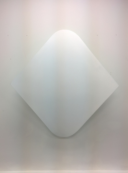 This continued evolution of work bought about a new variant of the series in 2009. The ‘Torqued Panels’ emerged out of the desire to remove the physical structure of the paintings (i.e. the stretcher frame), and to focus more intently on only surface. Fiberglass panels and custom mounting brackets were chosen to achieve painted torqued surfaces in varying sizes, shapes and colours that seem to ‘float off the wall’, giving them a weightlessness and presence apart from conventional paintings.