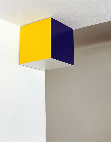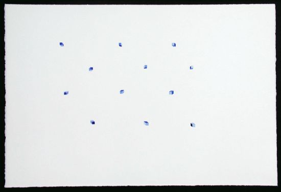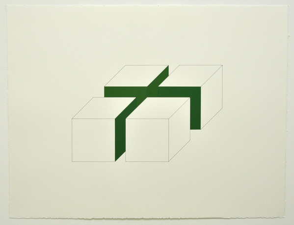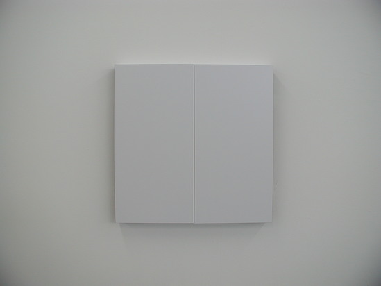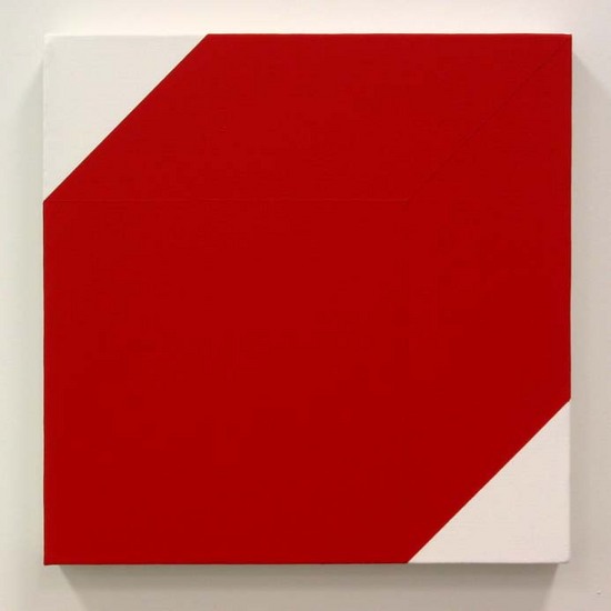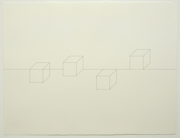 The Cube paintings can be seen as studies for the 3-dimensional work and explore the relationship of the 2-D plane to 3-D space. Once again ambiguous and quiet, yet they possess a dialogue of thought between abstraction and representational space. These paintings echo the Cubes and highlight the physical nature of space and form.