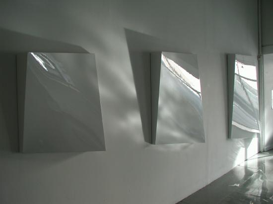 The main objective of this exhibition is to further explore the technical lighting of the paintings and to develop the idea of ‘total space’ within the gallery setting. Thus all the elements within this particular space are of equal importance to each other; the paintings, the light fixtures and the resulting light all create an atmosphere of totality.