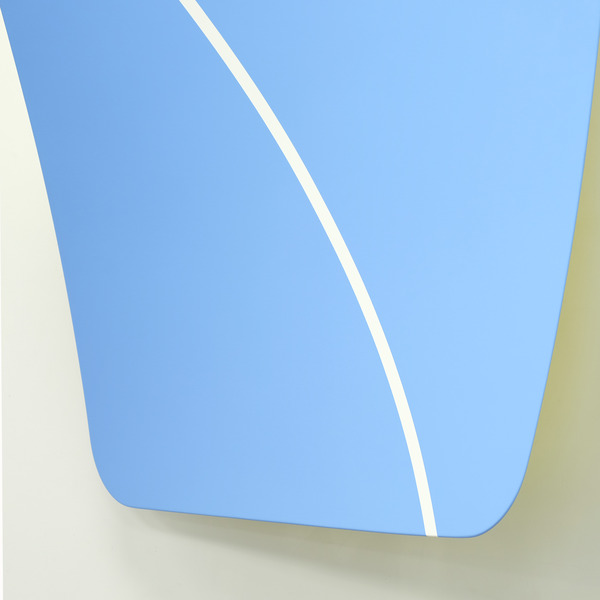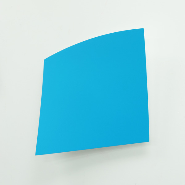 This continued evolution of work bought about a new variant of the series in 2009. The ‘Torqued Panels’ emerged out of the desire to remove the physical structure of the paintings (i.e. the stretcher frame), and to focus more intently on only surface. Fiberglass panels and custom mounting brackets were chosen to achieve painted torqued surfaces in varying sizes, shapes and colours that seem to ‘float off the wall’, giving them a weightlessness and presence apart from conventional paintings.